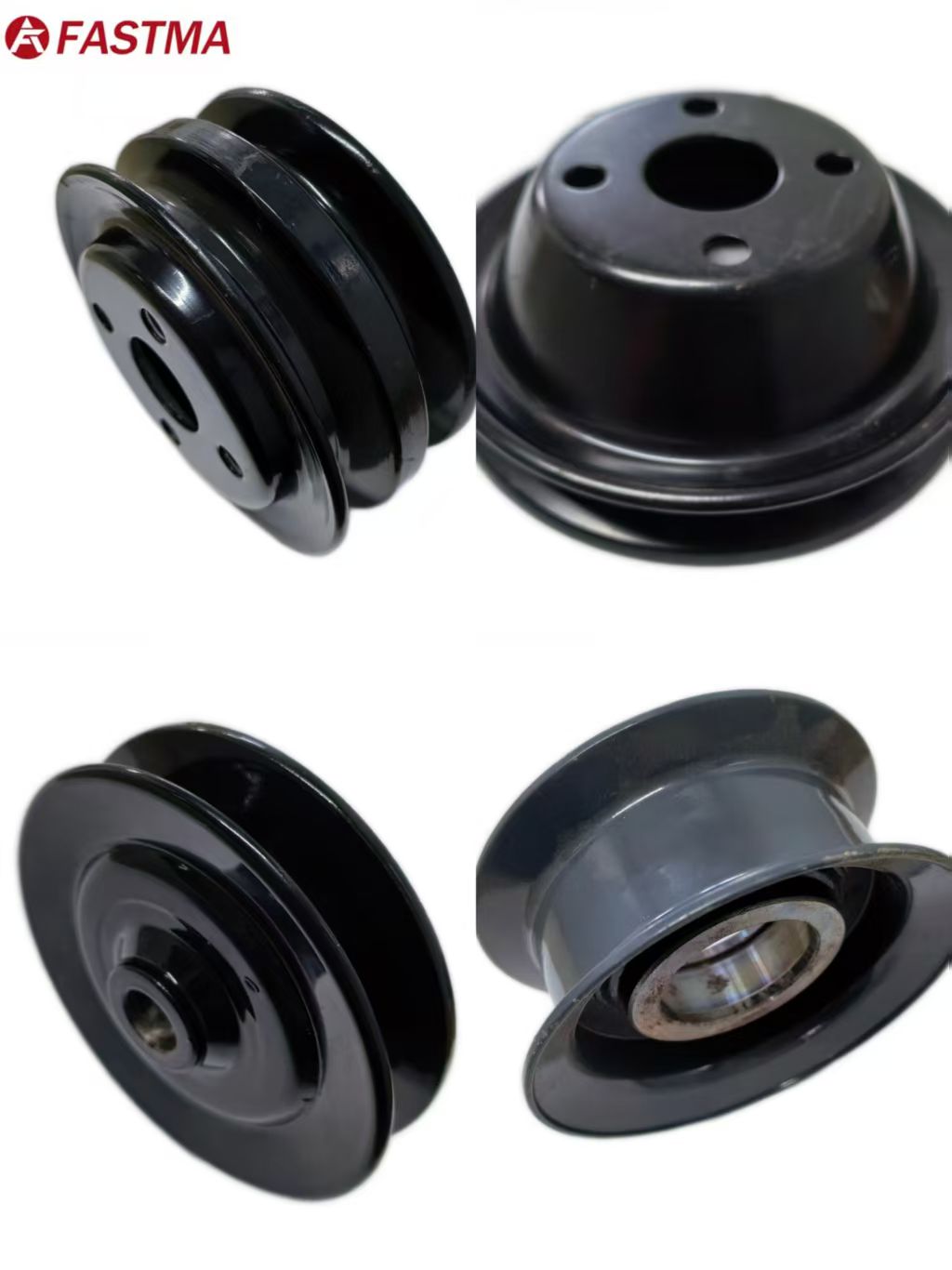 ベルトプーリーは、コア材料として鋳鉄またはプレス鋼を使用しており、プーリー本体、接続構造、保護層の 3 つの主要モジュールで構成されています。プーリー本体は、さまざまな幅のドライブベルトに対応できるよう、一重溝または二重溝のV型リムデザインを採用しています。また、一部のモデルにはスポークデザインも組み込まれており、構造強度を維持しながら軽量化を実現しています。接続構造には、キー溝またはセット穴を備えたハブが装備されています。一部のモデルにはベアリングが組み込まれていますが、他のモデルにはテーパースリーブが装備されており、さまざまなシナリオでの迅速な組み立てのニーズに対応します。外層はカラー亜鉛コーティング、黒色防錆塗料、または亜鉛メッキプロセスで処理されており、耐食性を効果的に向上させ、屋外の農業機械や工業用湿気の多い環境などの複雑な環境に適しています。