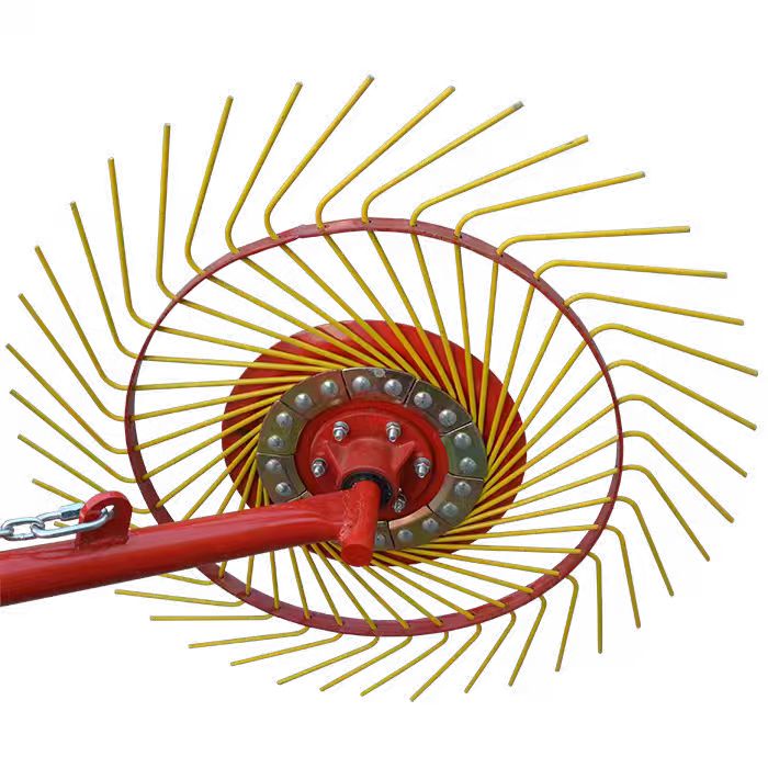 Wheel Hay レーキは主に、高強度フレーム、柔軟なレーキ歯アセンブリ、調整可能な歩行輪、および角度調整装置で構成されています。フレームは厚みのあるマンガン鋼でできており、複雑な現場条件の衝撃に耐えることができます。レーキ歯アセンブリはバネ鋼でできており、曲げに強いだけでなく、耐摩耗性もあります。調整可能なホイールセットは、さまざまな地形での作業ニーズに適応するために複数の調整レベルをサポートし、角度調整デバイスはレーキ振幅を正確に制御します。